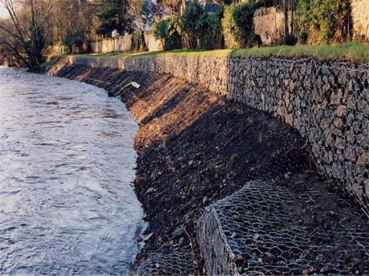 宾格石笼网近几年来在交通、水利、市政、园林、水土保持等工程中得到广泛应用。宾格石笼网是将耐腐蚀、高强度的低碳高镀锌钢丝或5%~10%铝锌稀合金镀层钢丝(或同质包覆聚合物钢丝),用机械方式将其双绞线合编成多绞网,六边形网状。见YB/T4221-2018行业标准。本实用新型可根据工程设计要求,组装成箱笼,装入块石等填料后连接成一体,用于堤坝、路基防护等工程中。在中国,宾格石笼网结构最早出现于2000年前的竹笼羊圈工艺,李冰父子在都江堰工程中就采用了传统意义上的宾格石笼网结构:现在,作为一种新工艺、新技术、新材料,已被成功地应用于水利工程、公路、铁路、堤坝等工程的防护。实现了工程结构与生态环境两者的有机结合。与此同时,由于它与一些传统的刚性结构相比有其自身的优势,因而已成为世界各国保护河床,治理滑坡,防治泥石流,防落石,兼顾环保的首选结构形式。