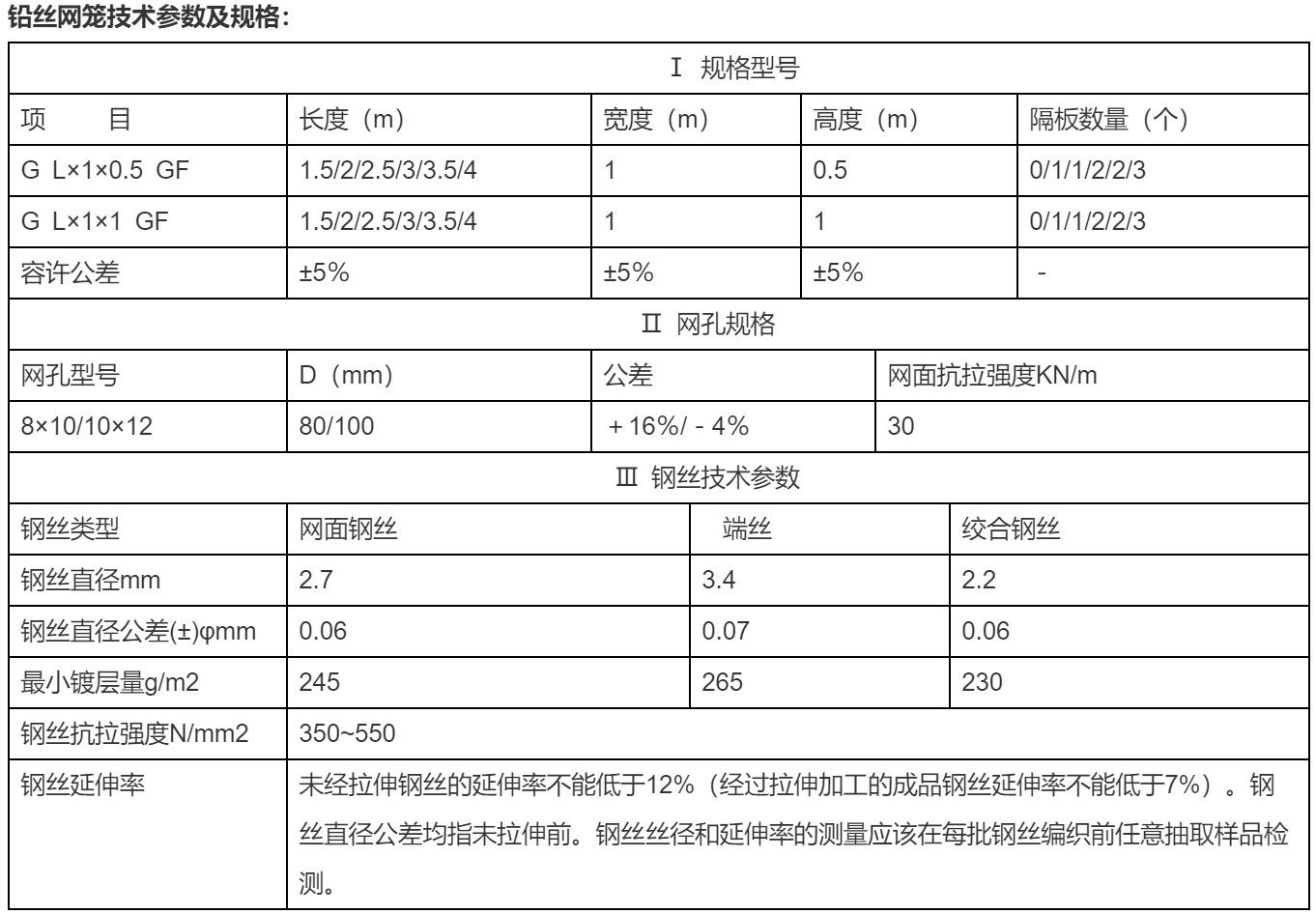 3.使用年限长。铅丝网笼的钢丝经热厚镀锌并表面覆塑防腐处理,其防腐性能优良,使用寿命可达百年。