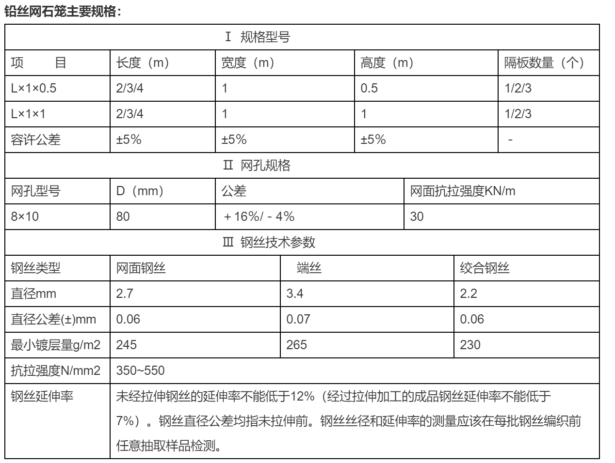 铅丝网石笼特点: