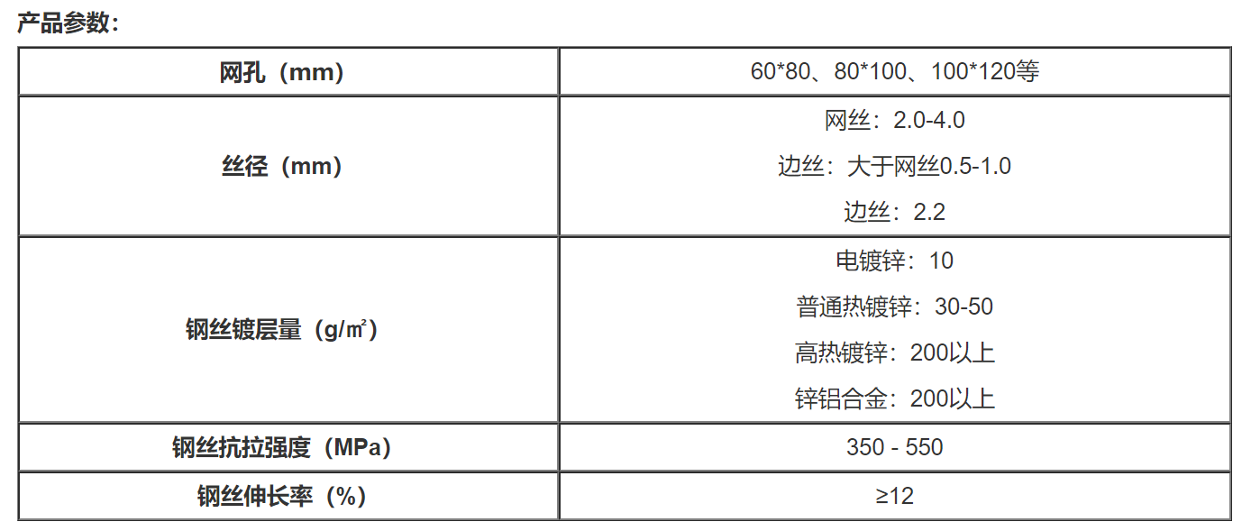 格宾是被广泛运用于交通、水利、市政、园林、水土保持等工程项目中的一种新型材料结构。格宾是将抗腐耐磨高强的低碳高镀锌钢丝或5%或10%铝锌稀合金镀层钢丝(部分图纸会选择同质进行覆塑),由机械将双线绞合编织成六边形网孔的网片,其双线绞合部分分为:三绞合和五绞合两种。格宾可根据工程设计要求组装成箱笼,并装入块石等填充料后连接成一体,用做堤防、路基防护等工程的新技术。为了保证钢丝的材质在编织过程中不受损伤、施工方便,以及体现其柔韧性特点,编织格宾的钢丝只能采用低碳钢丝(其它钢丝如中、高碳及合金钢丝设备编织不动,强行编织会破坏钢丝材质及镀层等)。